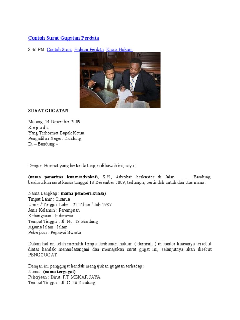 Contoh Gugatan Dalam Hukum Perdata - Contoh M via contohm.blogspot.com